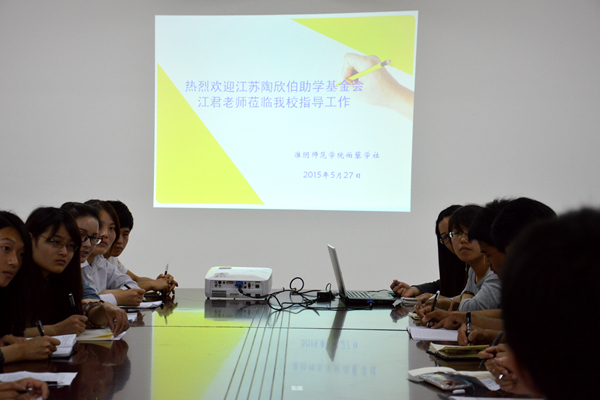 基金会江君老师莅临我校指导工作表现出了基金会对社团工作的重视与支持,淮阴师范学院伯藜学社也会在基金会以及各级领导的关心支持下、陶学子自身的不断努力中茁壮成长。