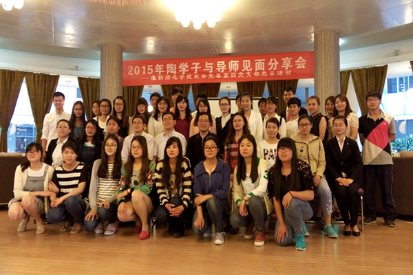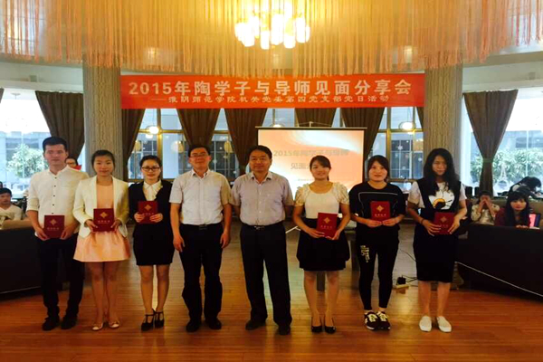 图为嘉宾与2015年淮阴师范学院“伯藜之星”合影留恋