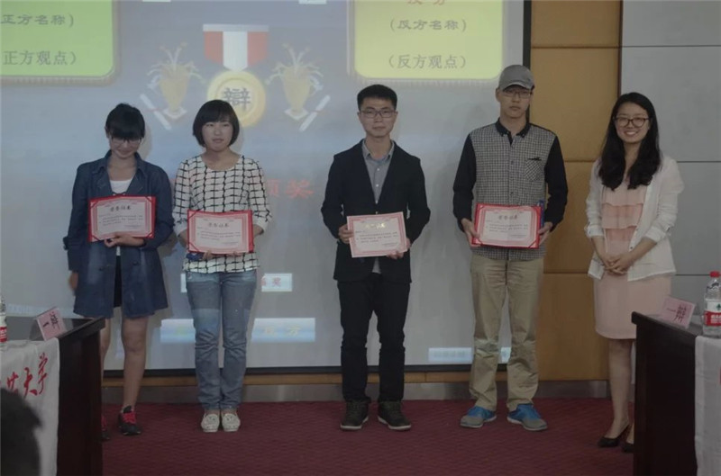 决赛时,一辩手兰青青明白晓畅的立场阐述论让我队在辩论时坚定的围绕这个主题进行,随后的环节,在前两场比赛中有着精彩表现的二辩手钟伟风采依旧,用迅捷的思维、严密的逻辑、犀利的言辞,赢得了场上观众的阵阵掌声。在自由辩论和总结陈词环节,我们的三辩江玲和四辩马菁也都有着精彩的表现。