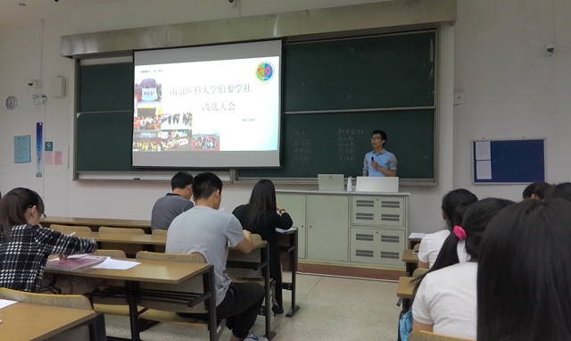 5月19日晚,南京医科大学伯藜学社换届选举大会在江宁校区博学楼阶二教室召开。江苏陶欣伯助学基金会郁鑫老师、学工处冯伟燕老师、孙金春老师及部分在校陶学子参加了本次改选大会。大会由社长李忠主持。