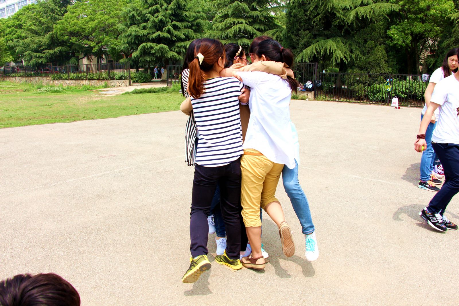 二十分钟后,伴随着一声哨响,比赛正式拉开序幕。各队成员协调一致,各展风采,加油声欢呼声充斥着整个操场……最终,激烈的比赛以“花儿与少年”队的胜利圆满落幕,“花少”队完成五项游戏仅用时2分20秒,速度之快让其他队员惊叹不已,在分享比赛心得时,获胜队的队长郭丽娟说:“一个团队若想成功必须运用恰当的方法,而这个方法不仅包括要善于利用有效资源,还要求学会倾听他人的意见,以沟通寻求彼此间的默契。”而用时较多的“英雄联盟”队队长袁筱蝶则表示:“游戏的目的不在于结果如何,而在于参与过程中大家的密切合作,共同付出心血,在团结中感受幸福,在活动中体验快乐!”