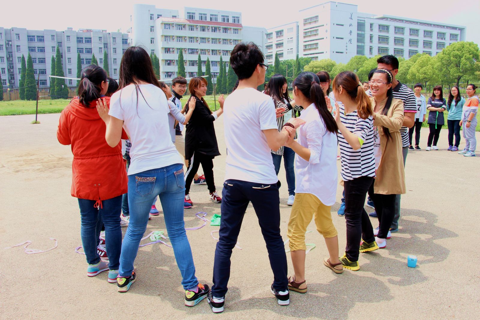 陶学子们在进行“拍掌”游戏与团队展示