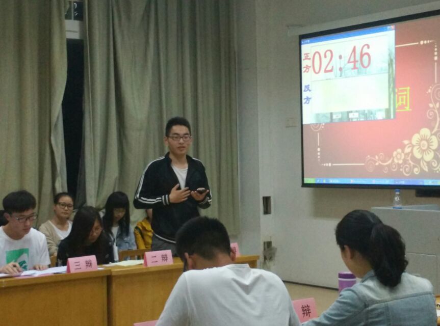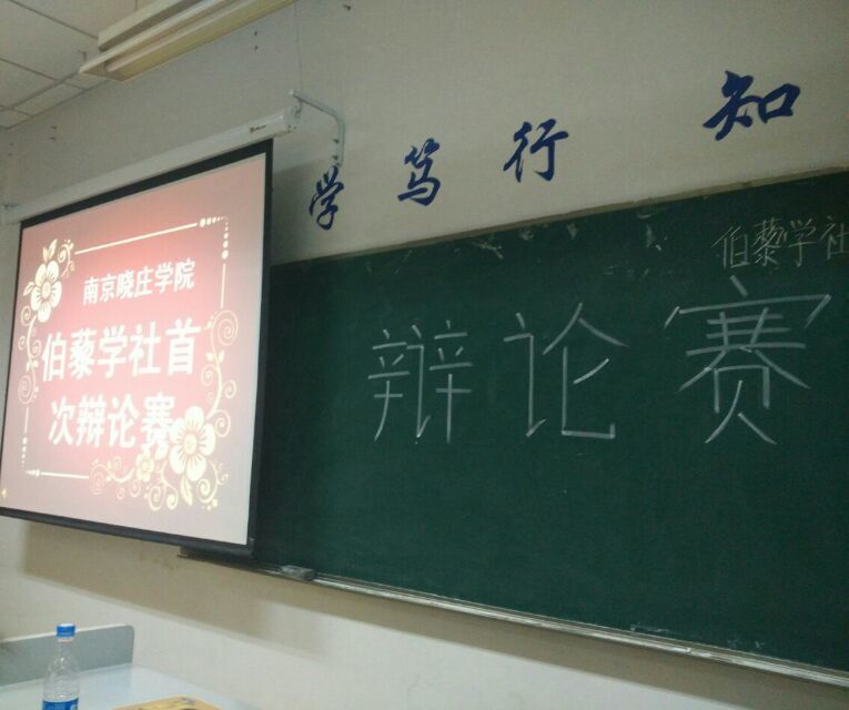 2015年5月6晚8点30分,南京晓庄学院伯藜学社在叔愚楼105举办了首场辩论赛。出席本次比赛的评委有我校辩论协会会长周玉员,校学生会学习部部长郑雨婷,伯藜学社社长王利国,陶学子李成松,办公室主任张腾月,外联部部长刘菊琴及众多陶学子。