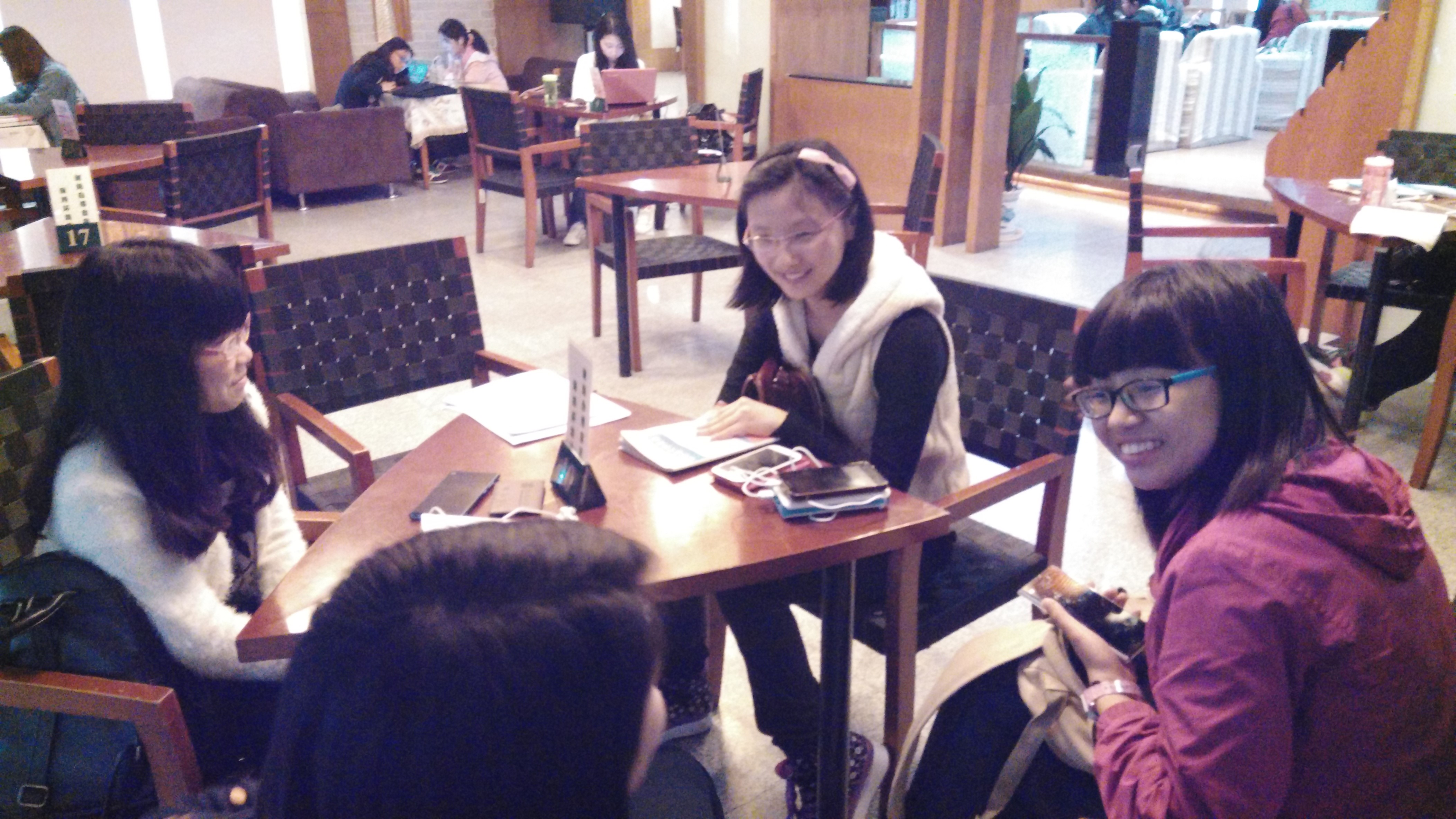 2015年4月20日晚上7点整,新一次伯藜渡舟活动在南师大敬文图书馆偲怡园开始。参加的人有李霞、何赛学、刘静、李静静和林怡晴,大家积极讨论,气氛活跃,交流了自己独家的学习心得。