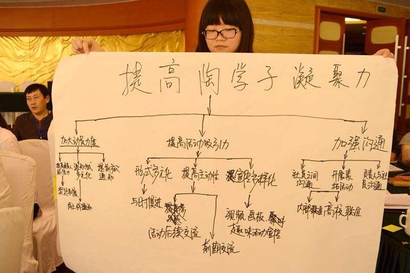 25日上午八点,“项目策划书的设计”正式开始。余露老师通过对项目策划书的十个要素、问题树与目标树的深入阐述,并言简意赅地说明了应该如何撰写项目策划书。随后,陶学子们分成6个小组展开讨论,不仅对项目策划书的撰写都有了更为深入的理解,也提出了解决社团存在的问题的方法。