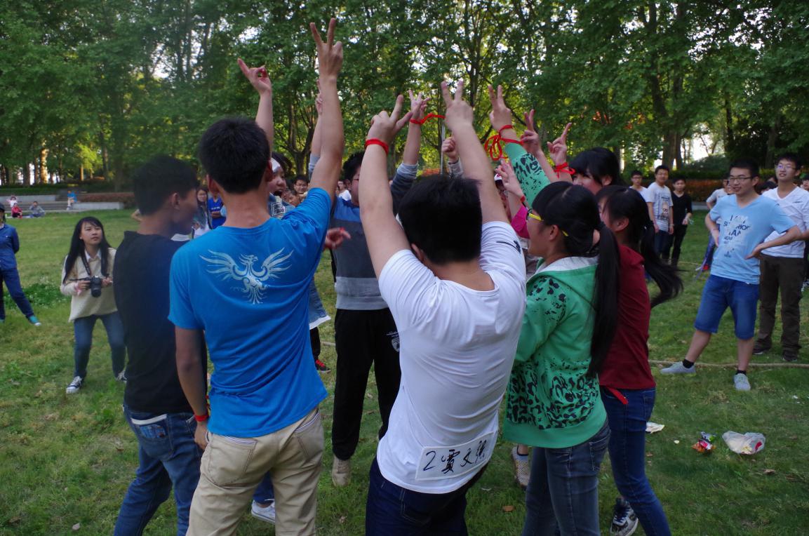 活动在社长兰炯鑫的激昂发言中开场!随后在主持人吴波的指导下,全体参与者有序分为七队,每队选出一名大一陶学子作为队长,并进行了团队名称、团队口号展示。正式培训开始前,进行了两个有趣的热身活动,记名字活动让大家彼此更了解,而在团队协作绳活动环节中,很多大一陶学子勇敢地站到人群中间,成为团队指挥,带领大家共同完成艰巨的任务——集体画圆、起立、行走,接着,秘书部张同学说:“行走在绳子上的人信任每一个握绳的人,这就是团队灵魂之所在”。热身活动逐步带着大家进入团队作战状态,而后开展了一场场极具挑战力的对抗赛。