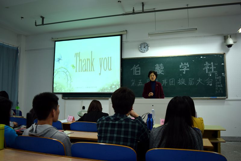 竞选演讲环节结束后,宫佳老师就本次换届选举致总结辞。宫佳老师肯定了包括社长骆美红在内的伯藜学社主要负责人对伯藜学社的服务与工作热情,也肯定了6位候选人上台竞选的勇气,并且对基金会老师的到场表达了真挚的感谢。她强调了一个“学”字,鼓励我们多多学习其他高校伯藜学社的优质活动。此外,宫佳老师希望陶学子们常怀感恩之心,把伯藜学社当成一个家,用心参与社团活动。对于新主席团,她提出以下要求:其一,实在做事,踏实交流。利用好基金会平台,与张颖老师经常交流,每学期立足做好十件事;其二,更好地完善规章制度;其三,大力推广项目立项,提高陶学子的参与度。对于陶学子们,她希望我们明确心中之“志”,努力上进。