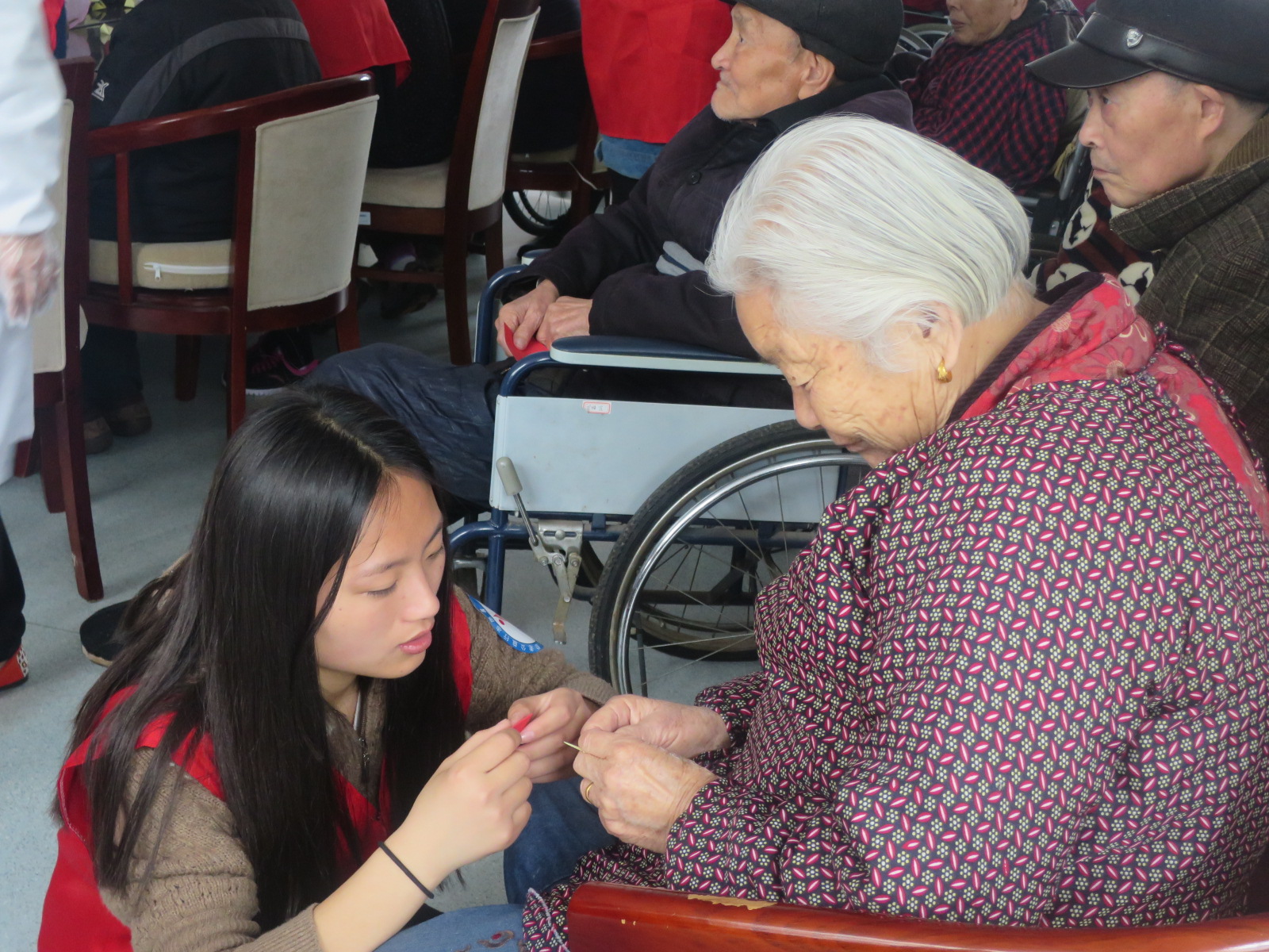 经过近40分钟的路程,陶学子们抵达了秣陵街道敬老院。大家穿上统一的志愿者服装,迫不及待的进入敬老院。纷纷与爷爷奶奶们热情的打着招呼。随后陶学子们邀请爷爷奶奶们来活动室观看精心准备的文艺表演。