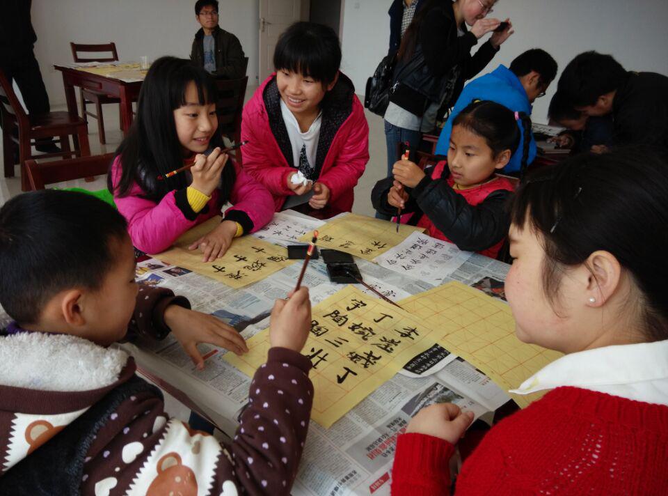 上午九点左右,我们一行人在预定时间内到达五山社区管理中心。不久,孩子们也陆续到达。首先,辅导孩子们做家庭作业,大家进行一对一辅导,孩子们听得也较为认真。我们由点及面,通过孩子的错误对其整体的学习提出合理的建议。材料备好,开始教习书法,多数同学学得非常认真,在此,感谢靳林青学长的支持与帮助。课间,文霞同学为同学们表演了吉他演唱,反响极好。将近11点,课程完美落幕。11点多全员安全返校。