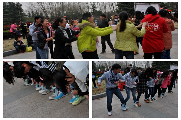 十点左右,陶学子开始素质拓展活动。活动开始前伯藜学社常务副社长王前对参与活动的陶学子进行分组,并挑选有经验的组长分配到各组进行指导,帮助他们完成活动。本次拓展活动分为五个部分——“天旋地转”、“乾坤大挪移”、“横行天下”、“同舟共济”、“我们是最棒的团队”,这几个活动无不考验队友之间的默契与团结。特别是“横行天下”、“乾坤大挪移”环节,充分反应了团队协作能力。在游戏中,同学们的热情高涨,不时传来阵阵加油打气的呐喊声,吸引了许多游人驻足观看。大家都沉浸在游戏所带来的乐趣中,欢呼喜悦声给桃花坞增添了更多生机与活力。活动结束后,大家对场地再一次进行的清理,帮助景区人员收拾垃圾,大家带着青春靓丽的笑容集体拍照留念。