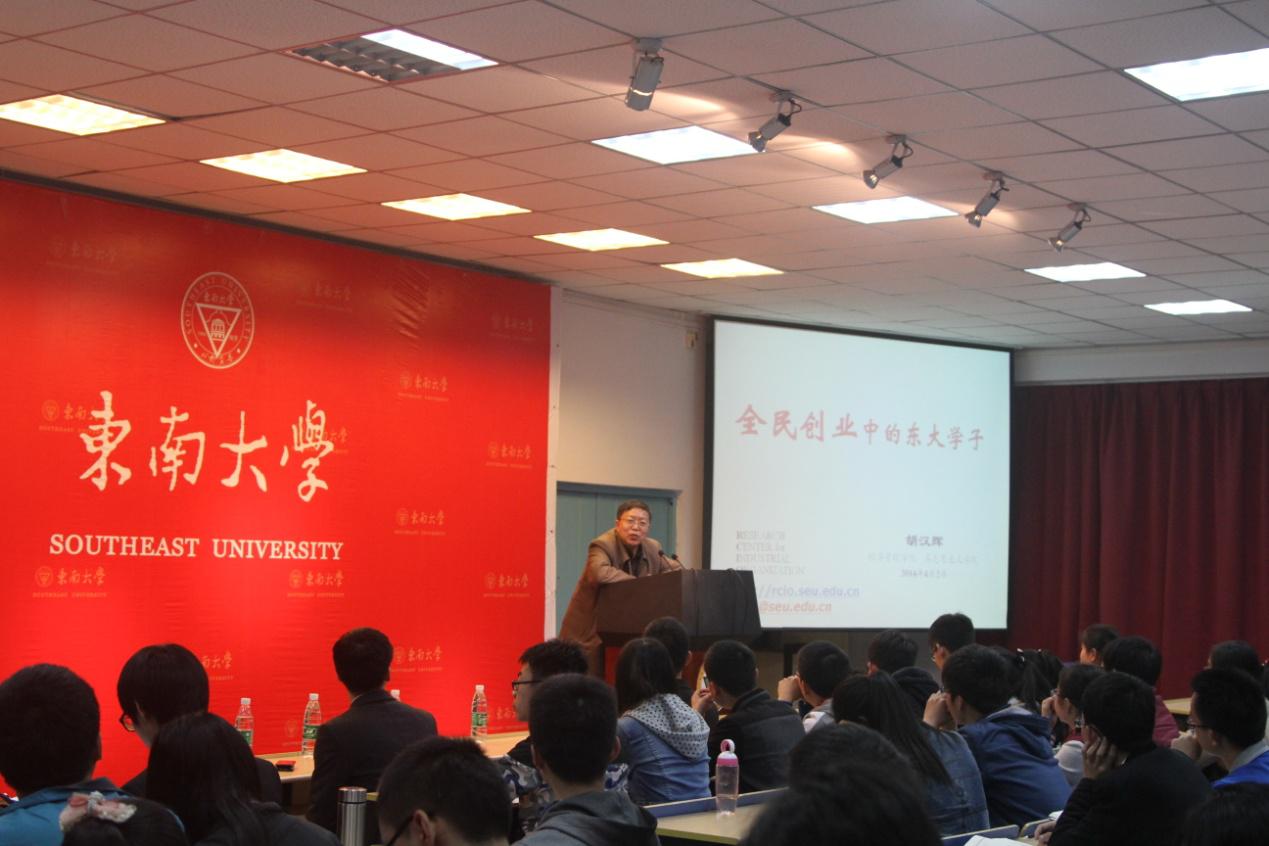 4月2日,东南大学集团经济与产业组织研究中心主任、创业教育专家、博士生导师胡汉辉教授在我校国家大学生素质教育基地做“全民创业中的东大学子”讲座,我校全体陶学子参加。