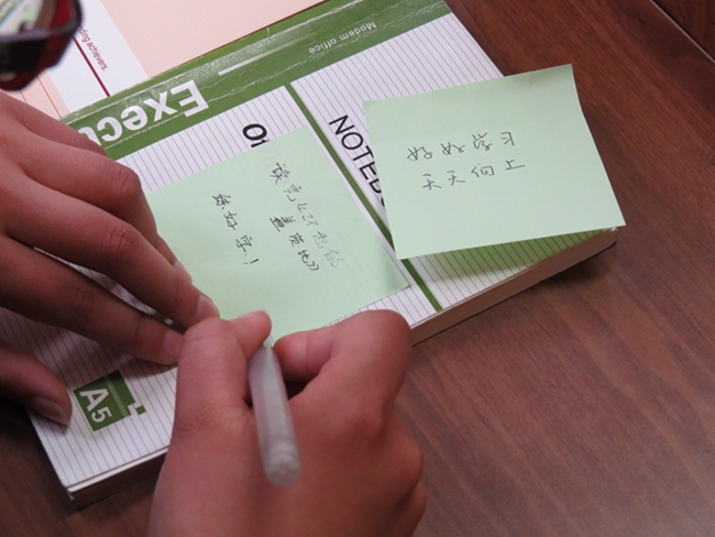 “希望学习部能越来越好,希望伯藜学社越办越好。”活动最后,主持人给每人一张便利贴,用来写下自己的的目标和希望,社长潘鹏英和学习部部长李欢这样写到。