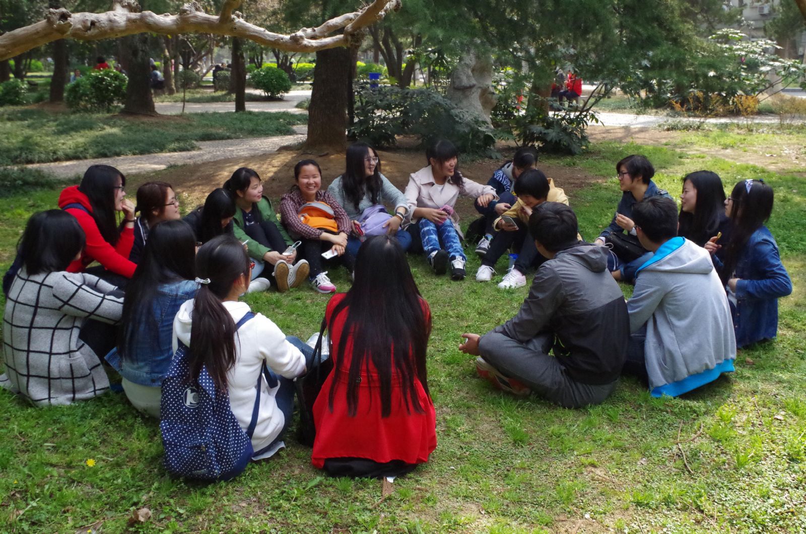 阳光依旧明媚,在参观完樱花后,我们一行人在一旁的小花园里休息,在各位的统一意见下,围成一圈开始玩起了谁是卧底的游戏,欢声笑语一片。