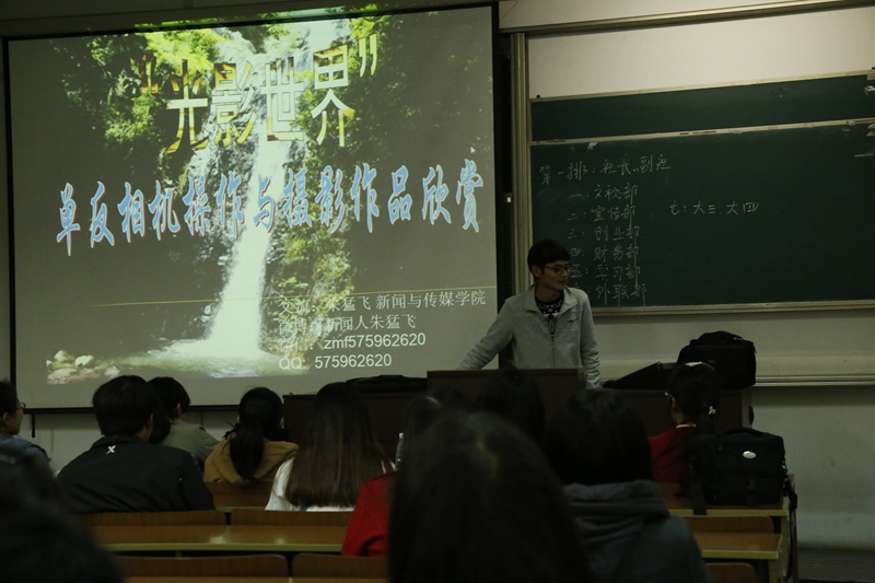 3月21日晚7点,扬州大学伯藜学社文汇路分社在文汇路校区7号楼110教室举行“‘光影世界’单反相机的操作与摄影作品欣赏”专业交流活动,此次交流会由分社长朱猛飞主持,社长季文平以及文汇路的所有陶学子参与此次交流会。