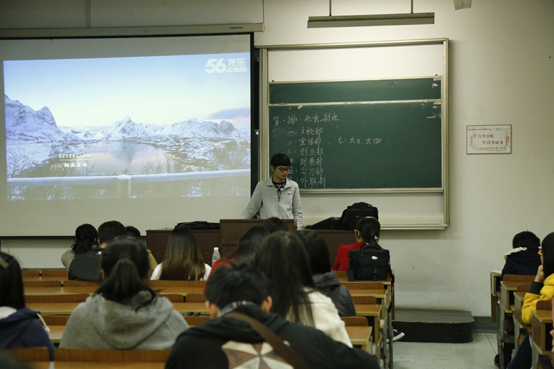 交流会开始后,副社长朱猛飞首先给大家放了一段由新闻与传媒学院大三学生制作的延时摄影作品“爱在扬州”,激发了同学们对此次交流会的兴趣,据朱猛飞介绍,“此段视频是由新闻与传媒学院大三的学生历时半年,拍了2万多张照片才制作成的。”同学们在惊叹之余也对视频制作者表示深深的佩服。