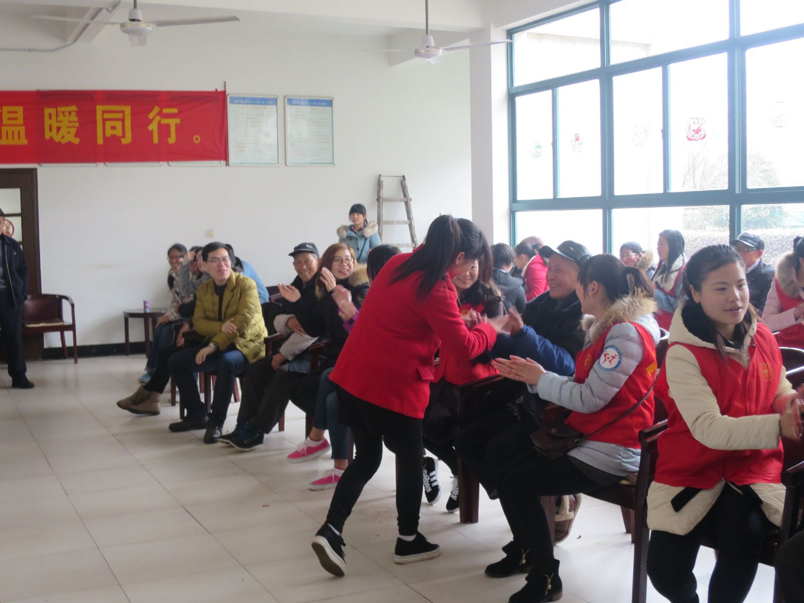 随着活动的气氛越来越高涨,敬老院的的医护人员、社会爱心人士和老人们也都参与到我们的演出当中来,和陶学子们来了一次热情的互动,因为他们的参也让演出更加精彩起来,让陶学子们感受到了老人们别具特色的活泼与热情。我们的活动将近尾声,最后由侯亚登带领陶学子们跳了一首时下最流行最火的广场舞《小苹果》,将整场的气氛推到了高潮,动人的旋律,欢快的舞姿,爷爷奶奶看的不亦乐乎。