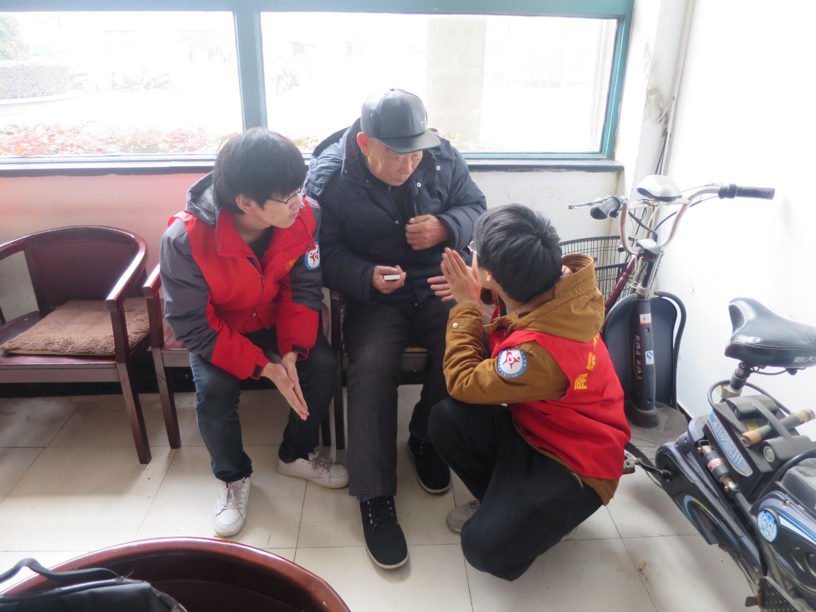 上午九点,当我们到达秣陵街道敬老院活动场地时,已经有很多社会上的热心人士在为老人们刮胡子,剪指甲。陶学子们的到来更加壮大了爱心队伍。我们纷纷依偎在爷爷奶奶身旁,陪老人们聊聊天。听老人们讲述改革开放前后的个人经历,令我们更加感受到今天的幸福来之不易。同时陶学子们也把自己在外读书以及家乡的情况给老人们一一讲述。
