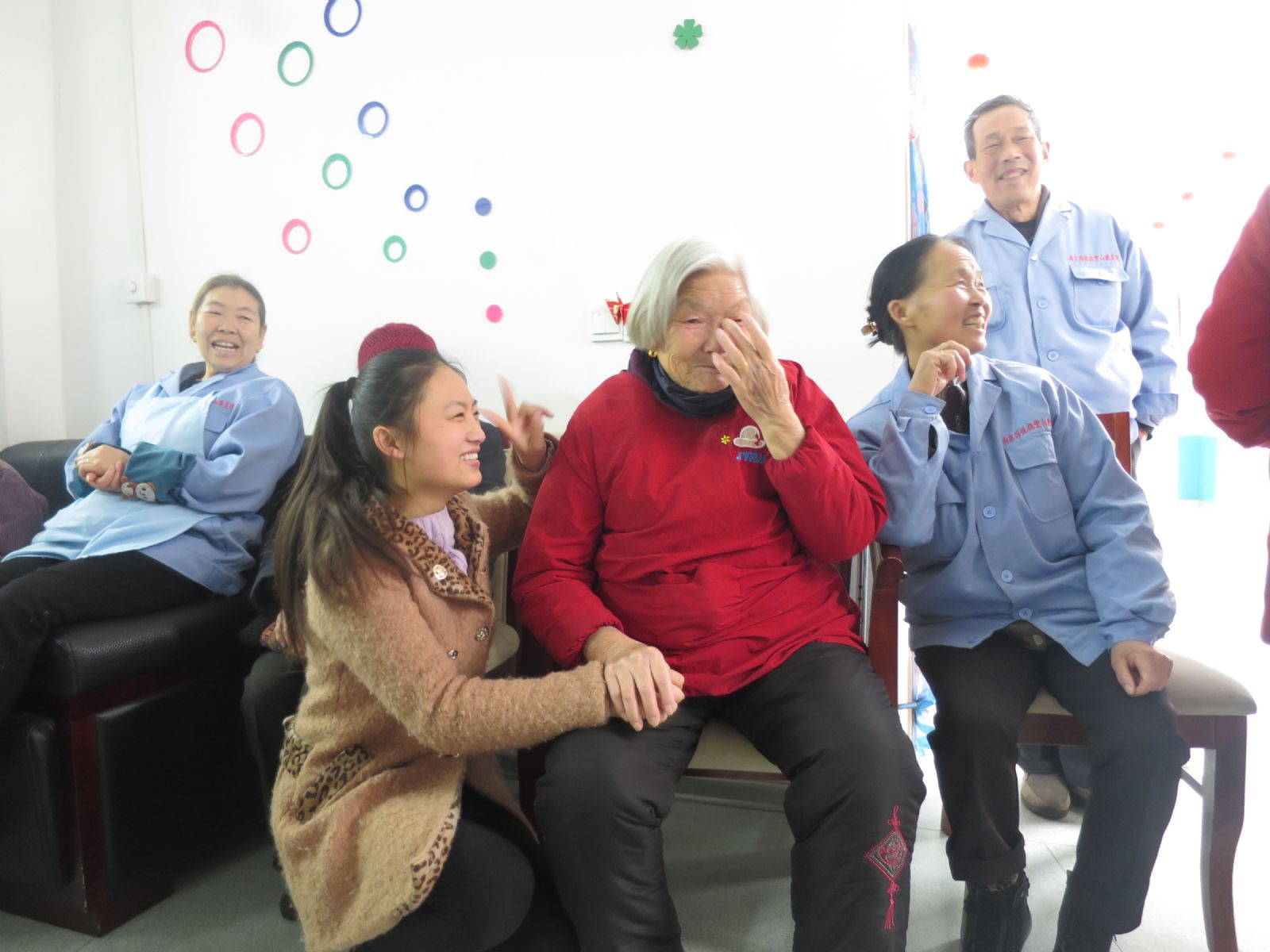 两个小时的志愿活动时间不知不觉过去了,我们和爷爷奶奶们合影留念,心中充满温暖、快乐。最后大家和爷爷奶奶们依依不舍地告别。