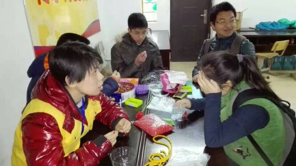 3月9日下午一点,八名经过踊跃报名的陶学子们率先开始了一次博爱义工之行。据参加义工服务的陶学子说,那里的朋友基本是二十岁左右的人群,但是患有自闭症,具有双重人格,他们就像是没长大的孩子一样。最令人印象深刻的是他们的自我介绍,有一位小名叫飞飞的博爱学生,她说话困难,只能说出一个一个的词语,不能说出一句完整的话,但是她凭借执着的信念,经过一番努力,说出了“飞飞,画画”四个字,简单的字眼却让在场的陶学子眼眶湿润了,多么真诚感人的自我介绍。那些博爱中心的学生非常信任陶学子们,他们像好朋友一样,一起聊天,做游戏,在梅园工厂串手工珠子,度过了一个美好又愉快的下午。