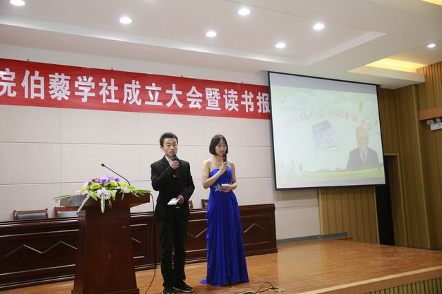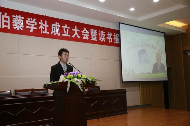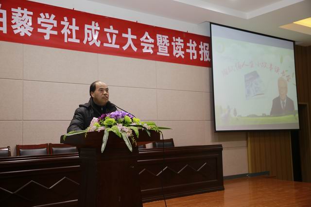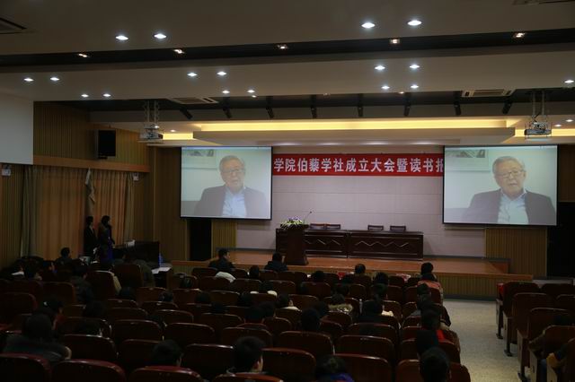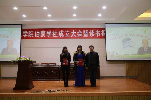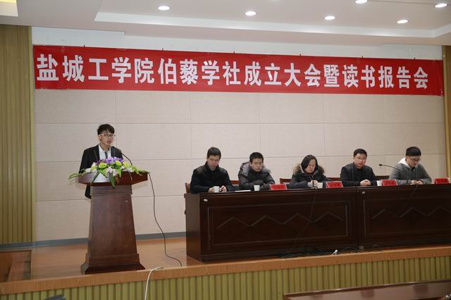 1月18日下午,我校伯藜学社成立大会暨读书报告会在南校区机械馆3楼报告厅举行。校团委胡凌霞书记、人文社会科学学院蒋继华教授、学生处助学工作科周旺基科长、学生处陈桂香博士、盐城师范学院学生处吕贤旺副科长和我校全体陶学子参加。