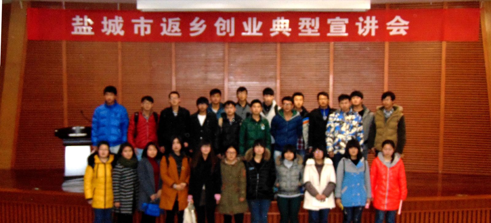 同样的地点,2015年1月9日,我们又齐聚一堂,在热烈的掌声中我们又迎来了类似的创业会。此次创业会,分别是来自江苏盐城市亭湖区南洋镇月青村党总支书记、盐城欣怡工贸有限公司执行董事胡俊杰,盐城蓝领科技发展有限公司总经理蔡志川,江苏绿之岛现代农业发展有限公司董事长夏吉萍和射阳县海河镇沙东村党委副书记、沙东村工业园区支部书记、团支部书记、盐城景越家庭农场创办人万亚洲,4名成功创业者都用质朴的话语为我们讲述了创业路上的艰辛,和孙鹏程老师的讲座有很多相似之处,只是他们是通过故事的形式完成了此次讲座,那样的酸甜苦辣,只要过来人才能体会得到的啊!
