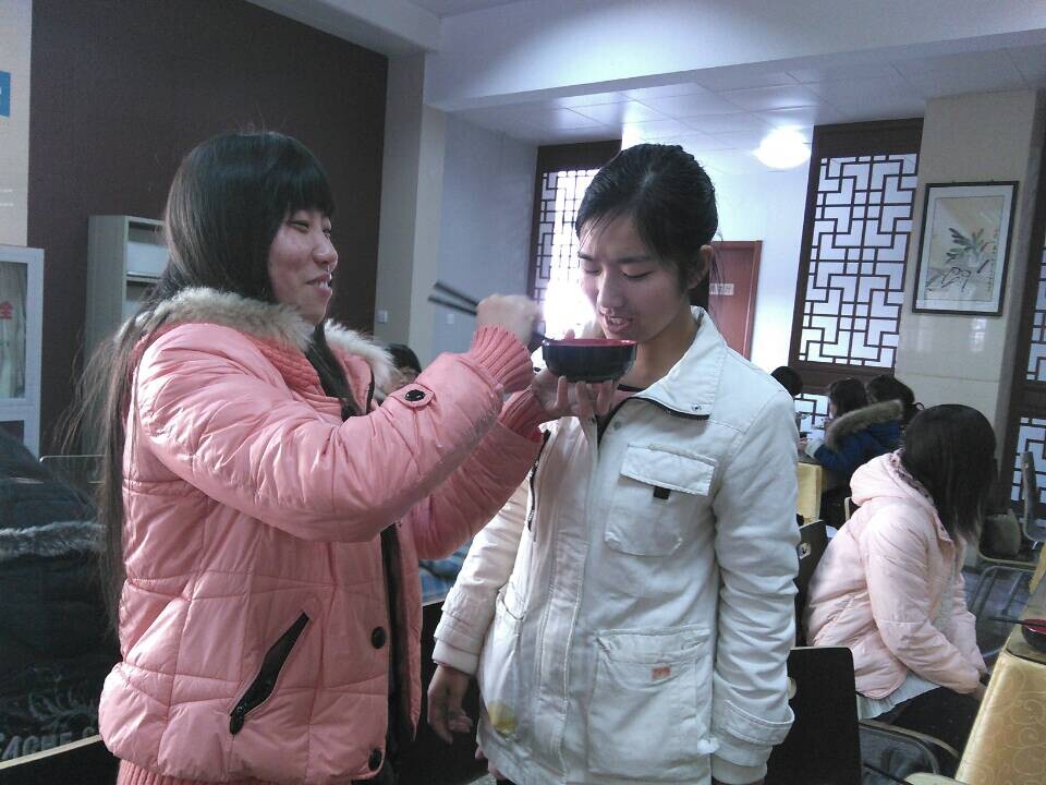 一批批饺子被送进了锅里。大家都怀着焦急、期待的心情等待着饺子的出炉,两锅热气腾腾的饺子出锅,很快被社员们抢食一空。热闹的气氛迅速感染了在食堂吃饭的其他学生。最后,大家津津有味地吃着热腾腾的饺子,别提有多高兴了。虽然是冬天,天气有点冷,但热腾腾的饺子带给大家一片温暖,社员们围成一堆,品尝着彼此亲手包的饺子,不住地称赞饺子的美味,更为其间添加了别样的温情和甜蜜。