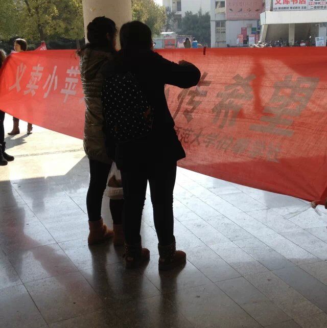 本次义卖,负责人秦沁有远见借助了南师大仙林校区北区的文化亭,这是一个天然的销售点,不但有着较高的人流量,而且能够彰显我们活动的权威性。通过几天火爆的销售量也能看出我们选址的正确与宣传的到位。