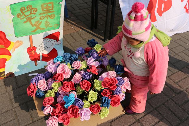 苹果义卖活动前期,伯藜学社创业部同学进行了精心的策划和准备工作,前往水果市场认真仔细的挑选水果以确保质量和美观。针对同学们对包装材料的不同需求,积极商讨多种包装方案,增加了义卖苹果的美观和对同学们的吸引力。义卖活动共持续四天,通过半天轮岗的形式确保义卖时间段现场工作高效有序开展。现场负责人明确分工,财务部同学认真进行销售记录,保证义卖账目清晰明确。圣诞老人表演、现场组织抽奖、赠送手工纸花等充满了爱心和温暖的小礼品,也都受到了同学们的高度赞扬。