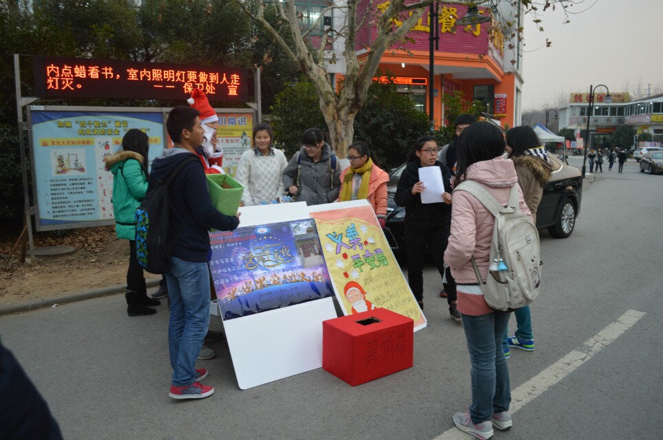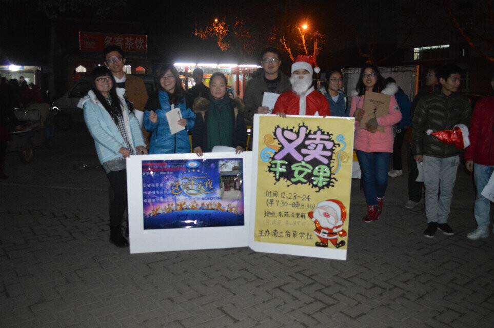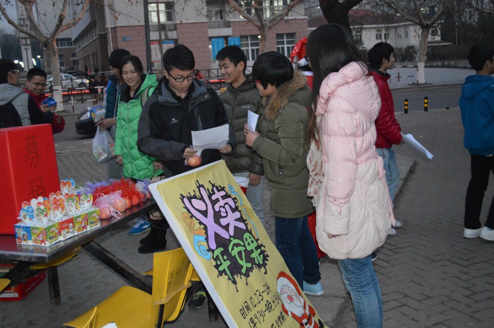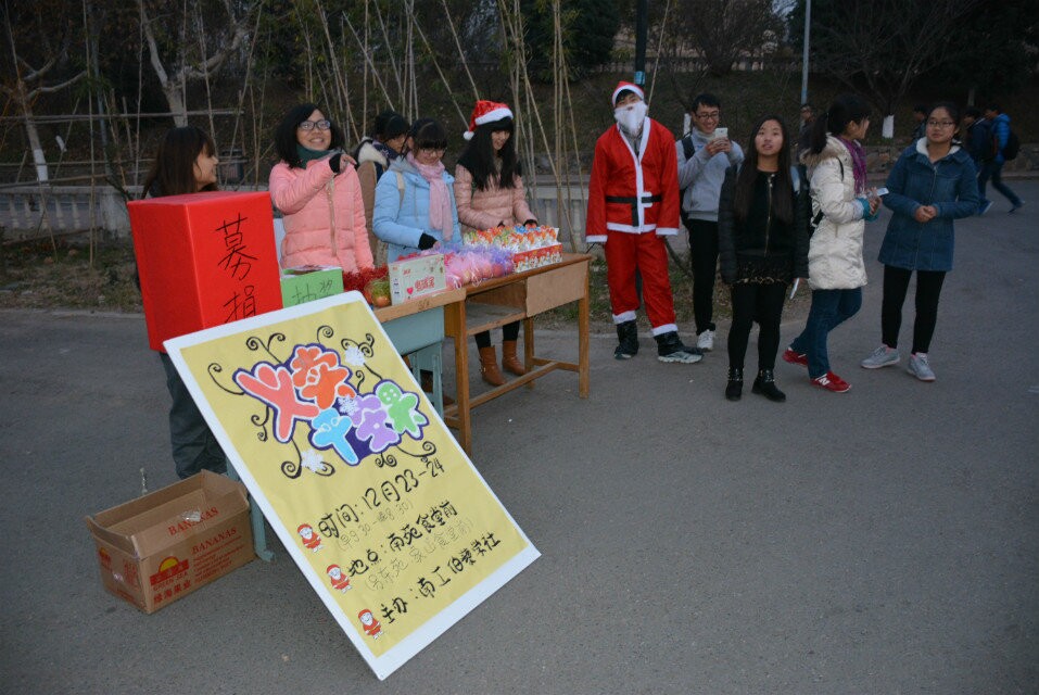 快乐圣诞,喜迎平安。12.23-24日我社平安果义卖活动在东苑、南苑和象山顺利举行。本次活动由活动部策划主办,其他部门协助举办,全体社员倾情参与。本次义卖活动所得善款将全部捐于云南省宁洱县同心镇那柯里小学。