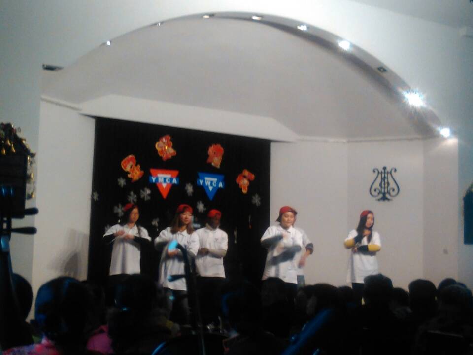 圣诞联欢的表演可谓是精彩之至。开始便是由中外青年志愿者表演的广场舞《YMCA》,将会场气氛带动的热烈起来。然后依次是慈恩托养中心的学员、青年会青年团、青年会戏曲团带来的歌曲、戏曲以及手语表演。活动有条不紊的进行着,伴随着现场浓烈的气氛,活动接近尾声,压轴节目是由青年会全体工作人员带来的合唱《马槽耶稣》,看到会场全体人员跟随伴唱的情形,我们知道,活动又进入了另一个高潮。在一曲民歌合奏说唱之后,演出结束。