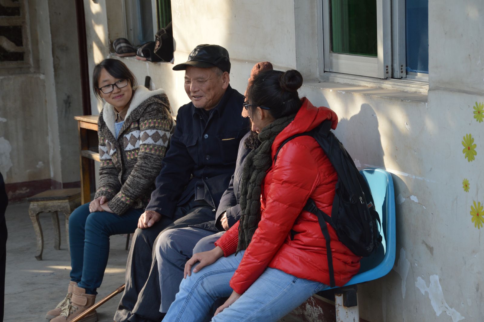 在与老人的交流中,一位老奶奶特别慈祥热情,她拉着同学的手让大家欣赏以前的照片, 里面有奶奶和老伴的照片,照片上奶奶的脸上洋溢着幸福的笑容。与此同时在外面的陶学子则帮老人把棉鞋穿上,并帮助他们活动筋骨。