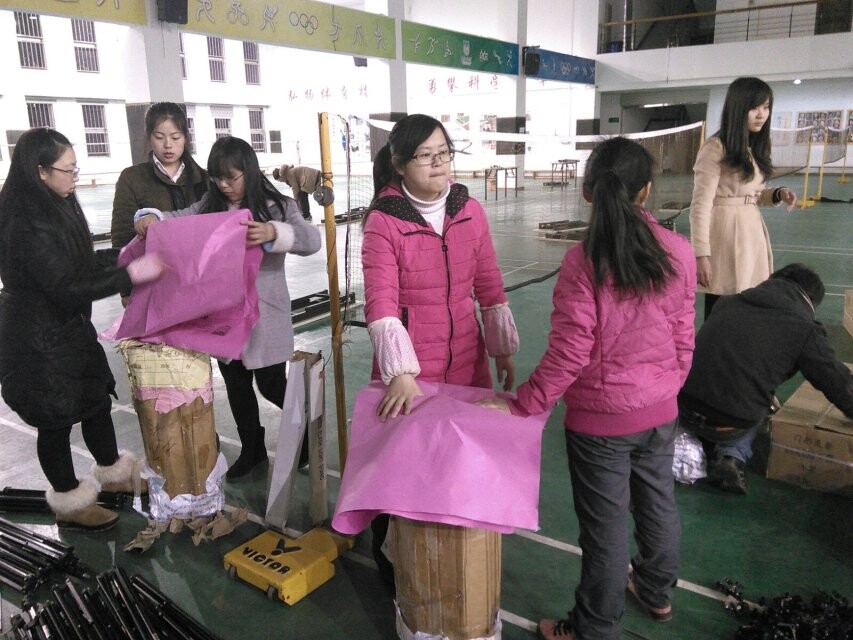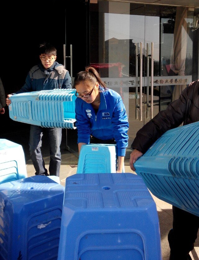 十点一刻,点名签到之后,陶学子们就热火朝天地干了起来。把250张桌子和700来把椅子,从体育馆一楼搬到了综合馆,并完成了桌椅布置、展板摆放等工作。很多陶学子手臂肌肉酸痛,手上磨出了水泡,但始终把笑容挂在脸上,坚持工作。整个志愿服务工作持续3小时。