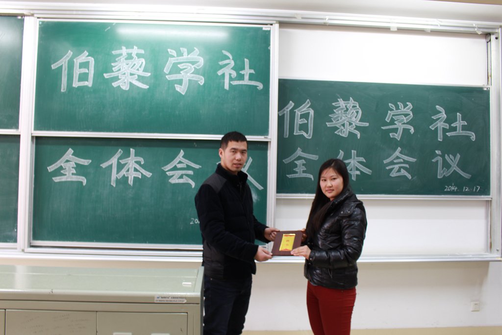 会议开始,吕贤旺老师发言并公布社委会成员和各个部门成员名单,明确了伯藜学社的现状以及以后的发展,并对全体成员提出严格的要求,进一步明确各个部门的分工细则。鉴于学社刚刚成立不久,考虑到未来学社的健康发展,吕贤旺老师向校勤工助学管理中心主任室成员蔡慧敏、周梦颁发了伯藜学社指导老师助理聘书,希望她们能够协助伯藜学社更好地开展工作。