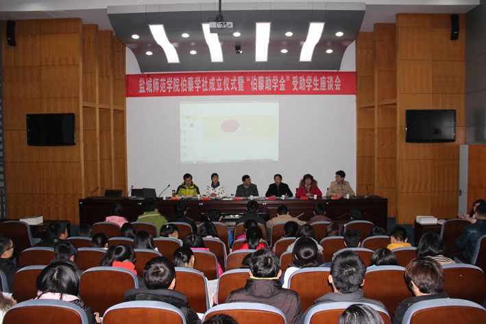 江苏陶欣伯助学基金会江君老师介绍了基金会的性质、宗旨、构成、发展前景与伯藜学社的主要构成以及未来发展趋势。张利伟秘书长宣布盐城师范学院“伯藜学社”正式成立,并向伯藜学社授旗。基金会张月红老师还向我校伯藜学社指导老师吕贤旺同志颁发聘书。