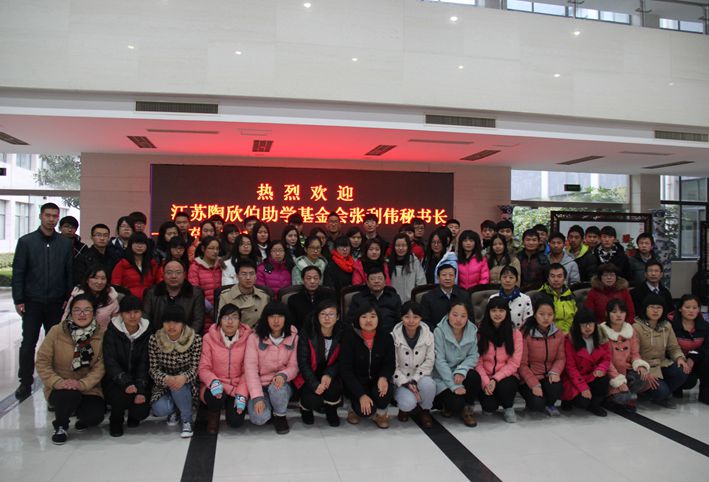 黄志纯副书记首先代表学校向江苏陶欣伯助学基金会一行表示衷心的感谢和热烈的欢迎,并详细介绍了我校资助工作落实情况以及培养人才、创新创业方面所取得的成绩。他指出我校高度重视人才培养工作,加大力度创新教育教学方式,不断构建实践平台促进学生能力素质全面提高,并特别说明我校在全国挑战杯创业计划大赛荣获三连冠以及在创新创业方面构建“一院两园”的举措,这些均为未来人才培养工作提供了有利的保障和支撑。他表示学校将积极配合基金会的工作,传承和发扬基金会的精神与理念,扎实地做好受助学生的培养工作。