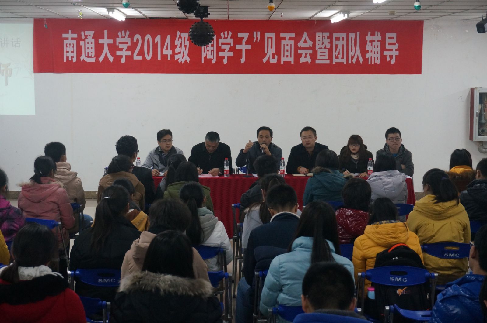 12月10日下午,南通大学伯藜学社2014级新生见面会在主校区自管会活动室如期举行。参加本次见面会的有学社负责人及2014级学社成员,学生工作处老师卢志勇,徐仁成以及指导老师刘逸巍出席了此次会议。