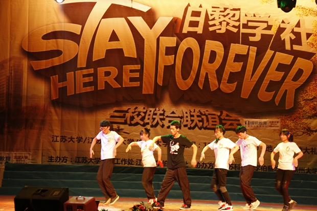 参加了此次活动的新一届陶学子刘阳阳则这样说道:“一点多钟,我们到达江大进行正式演出前的最后彩排。傍晚,江大的同学给我们准备了晚饭,我们深深地感受到了他们的贴心与温暖。六点钟,晚会开始,三所大学的陶学子们欢聚一堂。劲爆的街舞,激情的朗诵,温婉的民族舞,武术,竹笛,话剧……多彩多样的节目让我们如痴如醉。这一晚,我们在一起,一起表演,一起欢乐;我相信,以后的路上,我们也会一起走,一起进步,一起成长!”