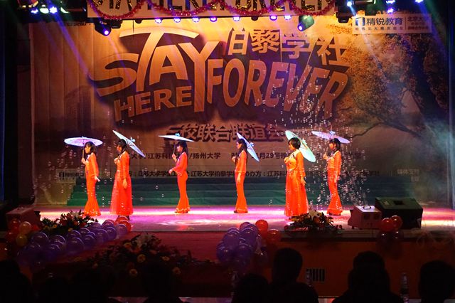 为迎接2014级新陶学子,展现伯藜学子的风采,2014年11月29日18点,由江苏大学学生工作处、江苏大学伯藜学社主办,江苏科技大学伯藜学社、扬州大学伯藜学社协办,精锐教育机构独家赞助的三校联合联谊会在江苏大学大礼堂隆重举行。江苏大学校长办公室主任尹志国、关工委副主任李国文、学生工作处副处长吴立平、发展办副主任王鹏、校团委副书记张文娟,江苏科技大学学生工作处副处长梁忠臣,江大、江科大、扬大三校学生资助科科长张芬、郭峰、周莹,本次晚会的赞助单位——精锐教育人力资源招聘经理杨婷、唐鸣喈, 22所高校伯藜学社负责人以及江大、江科大、扬大的全体陶学子参加了晚会。