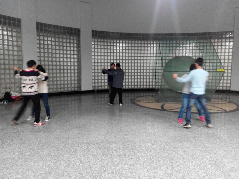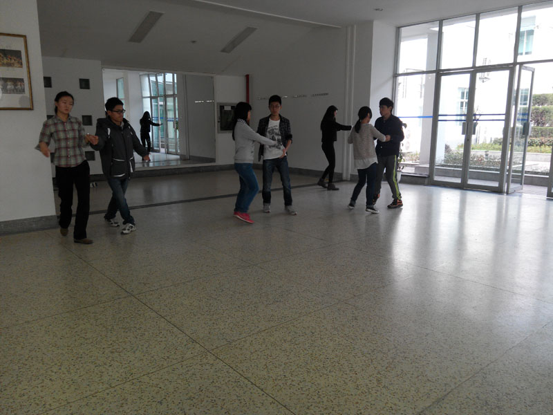 练舞同学大部分是零基础的,为了彩排时能有一个不错的效果,大家非常刻苦的练习。白天大家会在艺文馆的练舞厅,或者距离上课近的地方练习。晚上下课后大家会聚的齐一点,在逸夫楼大厅练习。我们联系了校舞蹈团的吕社长来指导我们排练舞蹈。另外,大家也会看着录好的舞蹈视频自己纠正舞蹈动作,每天晚上都练习到10:30之后才回寝室。
