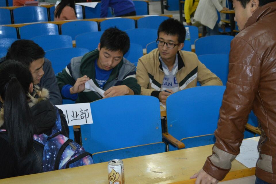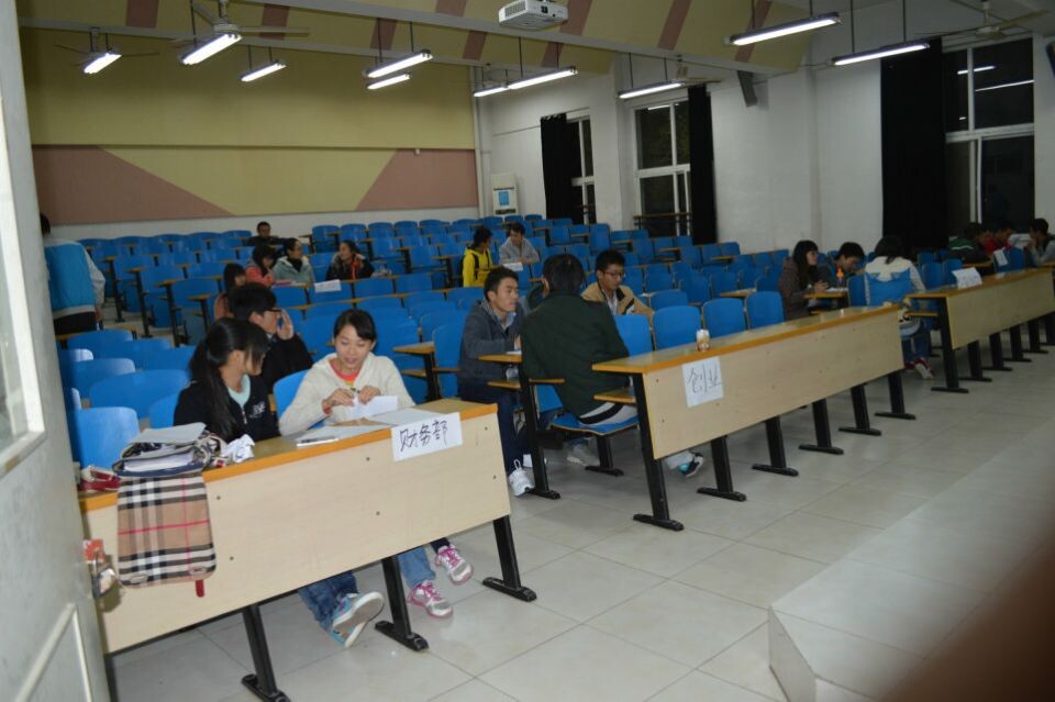 2014年11月15日晚上6:30,2014级陶学子部门招新面试在厚学楼204教室拉开帷幕,学社指导者温学长,副社长、七个部门部长及全体14级陶学子参加面试活动。
