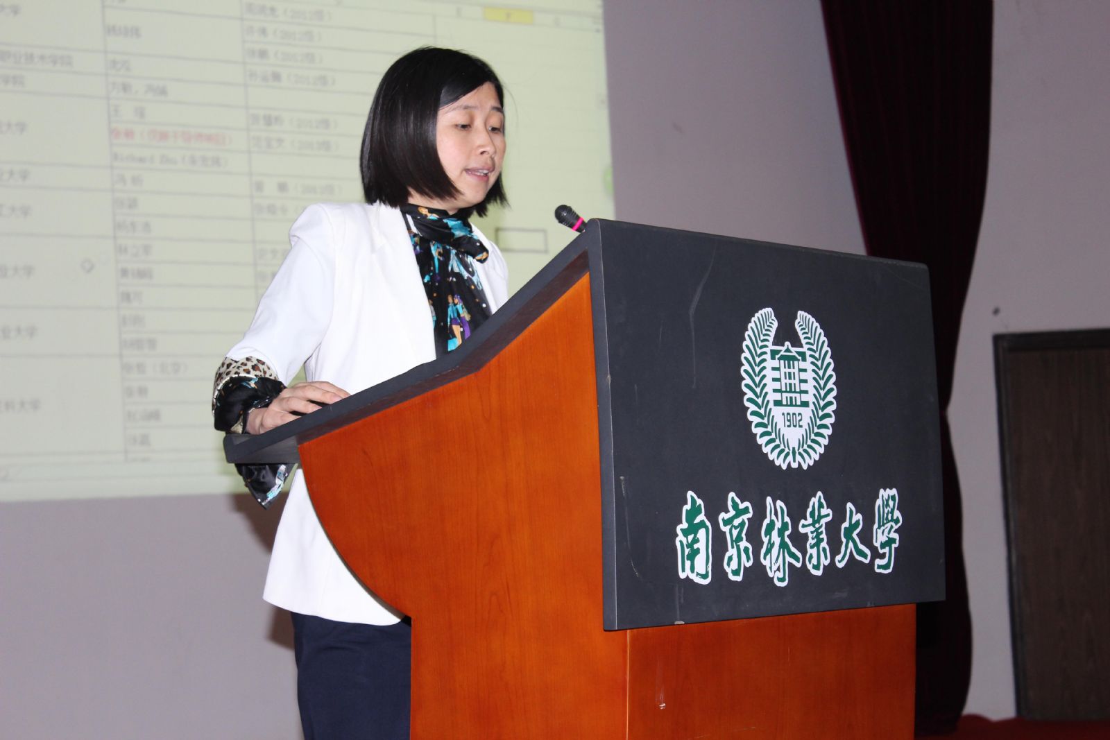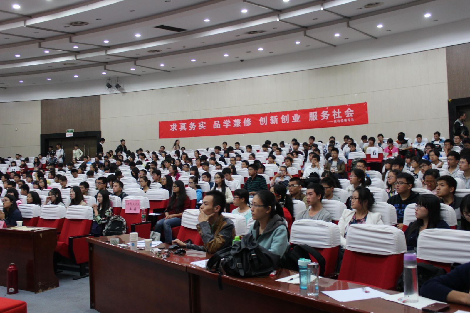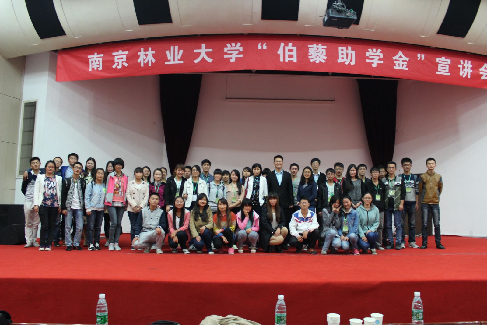 2014年10月14日晚,2014年度“伯藜助学金”宣讲会在教五楼报告厅举行。江苏陶欣伯助学基金会导师项目管理负责人余璐女士,南京林业大学学生工作处副部(处)长姜俊玲、大学生资助中心工作人员、省内各高校伯藜学社代表(伯藜学社由受到“伯藜助学金”资助的同学组成)以及我校400名2014级家庭经济困难的同学参加了会议。