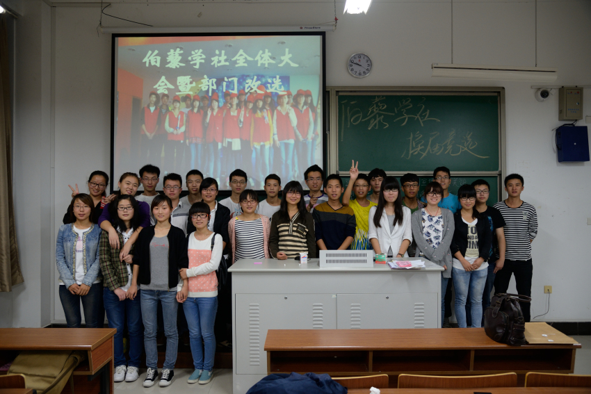 9月26日晚七点,扬州大学扬子津校区伯藜学社社员聚集在文津楼s411参加全体会议,文汇路校区以及瘦西湖校区的伯藜学社社长也受邀参加会议。会议围绕换届选举和对一学年的活动的总结交流两个方面展开,此次会议由潘鹏英副社长主持召开。