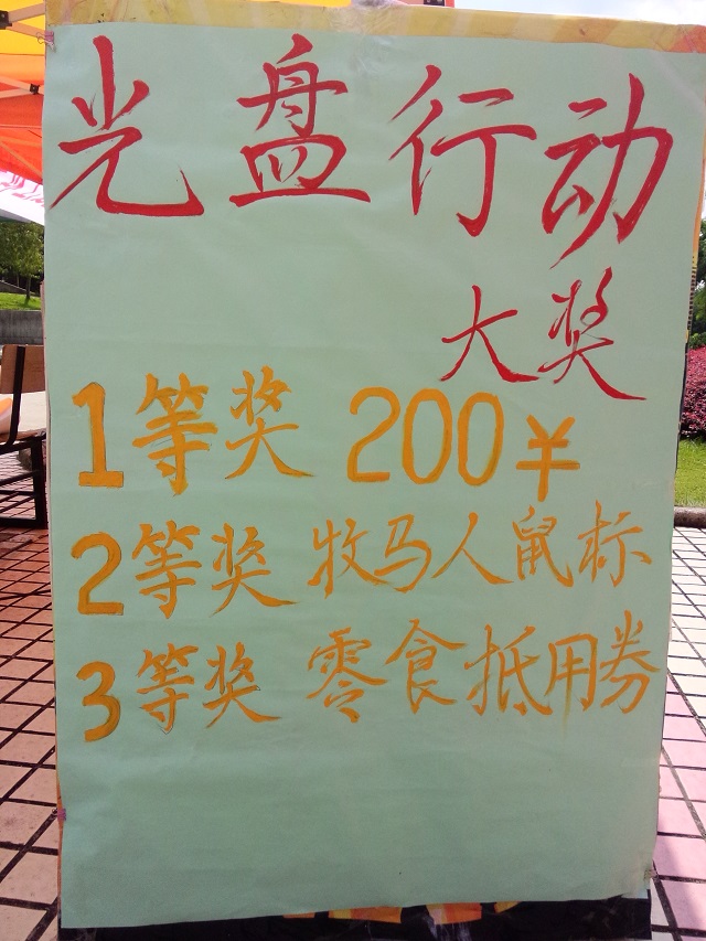 据悉光盘行动将在9月22日到25日陆续在学校西校区食堂门口举行,期待更多的同学参与!