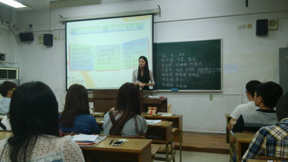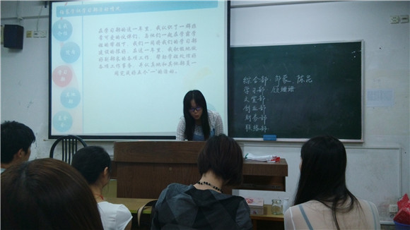 首先进行的是综合部,学习部,文宣部,创业部,财务部,联络部六大部门的部长竞选。参与竞选的同学们对待本次竞选非常认真,事先都准备好了精美的竞选PPT进行演说。其中,竞选学习部部长的商学院顾珊珊同学先做自我介绍,然后分别从自己的工作能力,学习获奖,参与学社活动等方面进行展示。学社活动中最引人注意的就是她参加的镇江素拓和伯藜创业夏令营,活动之精彩丰富令同学们印象深刻。另外她还展现了自己如果竞选上学习部部长之后的“三强政策”。竞选文宣部部长的刘伟同学,其踏实严谨的态度让每位同学都深有感受。因为对技术和计算机感兴趣,所以在文宣部制作年刊和社团的logo方面奉献了很多。每位竞选者都积极展现自己的优势及愿为学社服务的意向,他们的表现让当场的同学们很是称赞。