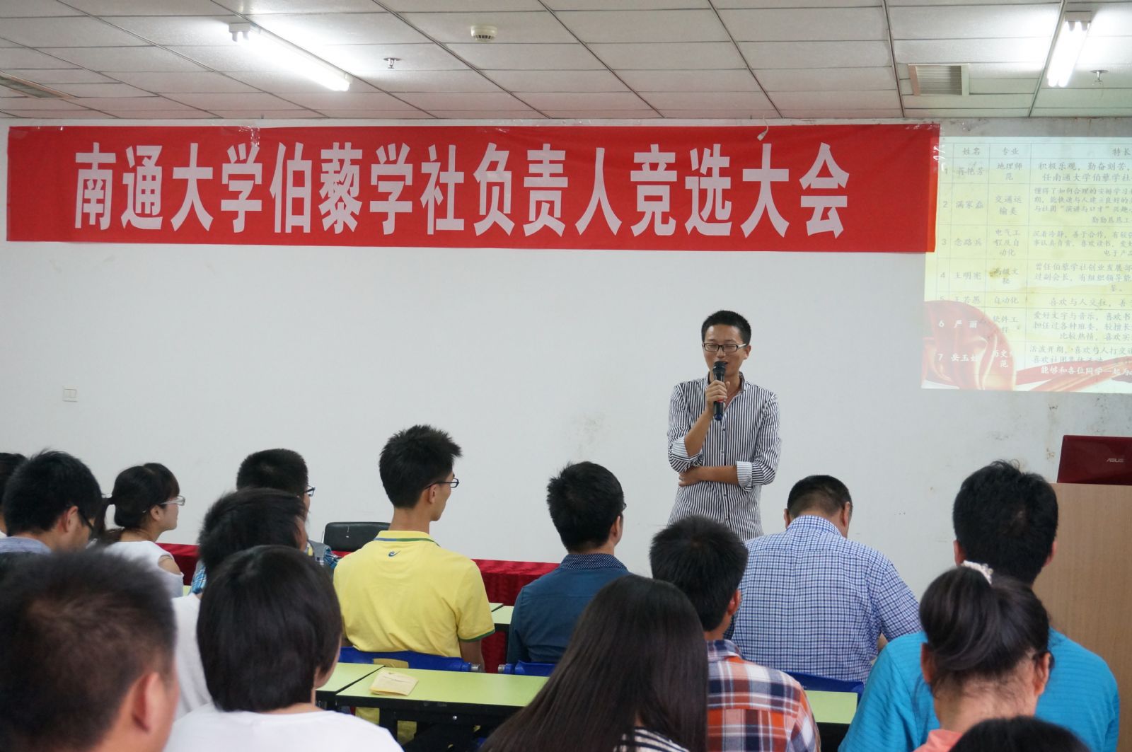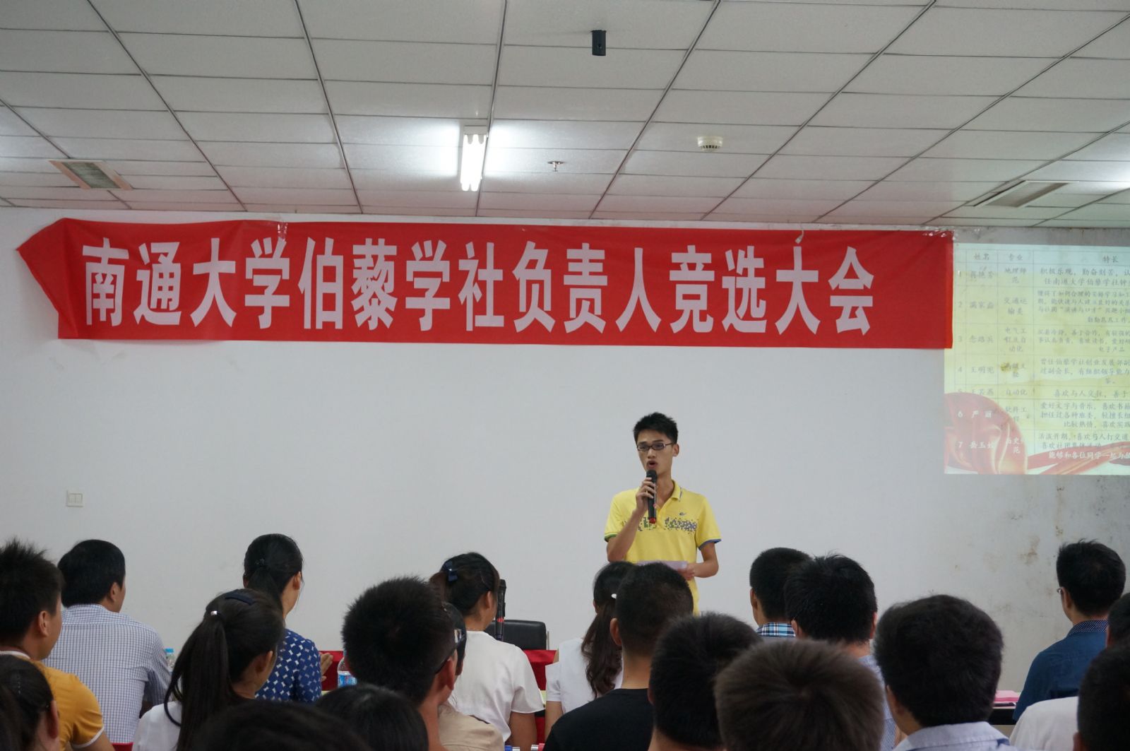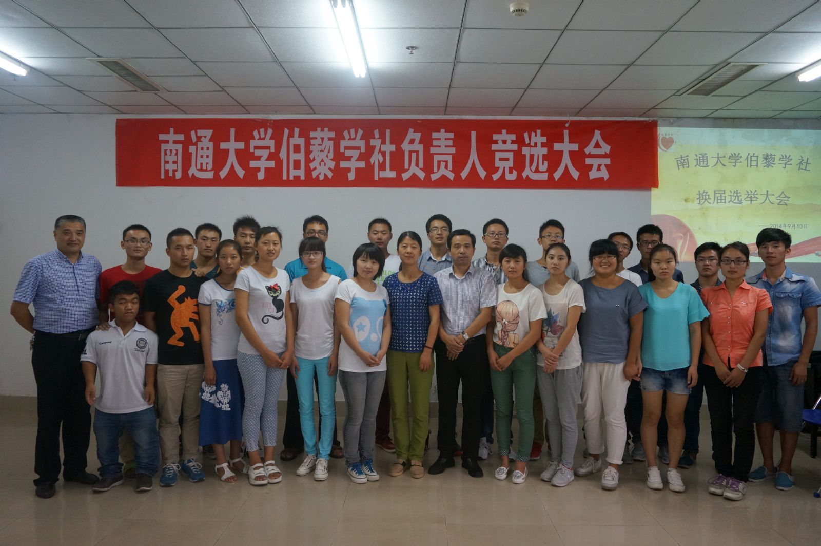 2014年9月10日下午2点,南通大学伯藜学社2014届换届选举于主校区二食堂332室如期举行。江苏陶欣伯基金会项目主任张月红,南通大学学生工作处副处长卢志勇,助学办主任徐仁成及南通大学伯藜学社指导教师刘逸巍出席会议。本次竞选共有23名陶学子参加,63名伯藜学社各学院代表参与投票。