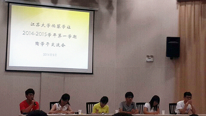 首先,伯藜学社首任社长杨柏林、副社长王阳阳、副社长雷米娜依次就工作一年半以来的工作做深刻的总结,在他们将接力棒传给新一届的主席团成员时对社团的发展提出新思路;第二,学社新一届主席团成员:社长王阳阳、副社长成雪娇、副社长孙坚添、副社长李华江轮流发表了接任讲话,表达自己对社团未来的展望;最后,所有的陶学子进行了现场交流互动,对学社的未来发展发表了自己的意见,并以提交心愿卡的形式,详细地表达了自己的建议和心声。在伯藜学社全体师生的积极讨论和融洽交流之中,江苏大学伯藜学社2014-2015学年第一学期全体成员大会圆满落幕。