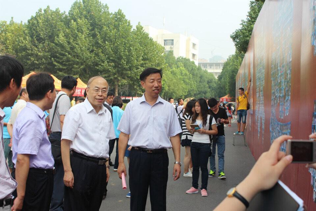 在迎新期间,徐放鸣书记等学校领导和老师多次亲临校园文化纪念品活动现场,对伯藜学社校园文化纪念品工作给予了关心和指导,“伯藜学社设计的一系列校园文化纪念品,是学生爱校意识和创新精神的体现,希望大家能够虚心听取同学们的反馈意见,对纪念品加以改进和创新,争取做出更好的成绩来。也希望伯藜学社的同学们把刻苦钻研、自强不息的精神继续发扬下去。”徐书记说。迎新的第二天,徐州日报的记者慕名而来,专门采访了校园文化纪念品的活动。