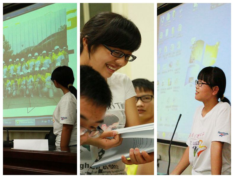 分享之后,主持人给大家发了月饼、小零食。在大家的推荐下,陶学子贾志伟向大家分享了暑假“教师”生活。学会了如何招生,如何教学生,如何处理好同事及和上级之间的关系。陶学子韩芦霞跟大家聊起她的“青奥会志愿者”之行,说起了她们每日重复的行程,不厌其烦的为他人服务。陶学子黄倩兰则向大家简述了上海“清风人家”的实习,客户各种不尽合理的要求让她明白“顾客是上帝”的真正内含。大城市生活的不容易更是让黄倩兰同学明白“一定要好好读书”。陶学子吴泽林也对自己在南京两个月“为自己打工”做了简述,他同一行人建立了团队,做设计;在南京租了房子,自己做饭;虽然最后没有赚钱,也没亏损,却获得了丰富的经验和一个良好的团队。