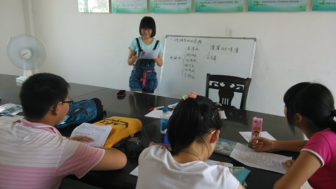 五位陶学子和选拔出来的当地十多位大学生一起承担起了教学工作,每个人负责相应的科目,二十天的教学工作既是对自己中学、大学学习的知识的考察,也是对自己交际能力、表达能力、组织能力、教学能力的锻炼。开始的几堂课,老师们还有些紧张,但是一旦真正进入角色,再加上自己扎实的基本功,接下来的课程上得游刃有余。现在,课程即将结束,老师们对过去充实而辛苦的生活不免留恋,因为这么久的相处下来,他们和学生们已经建立了良好的关系,很多学生希望老师们明年还来。