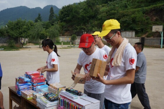 翌日早上8点,在张世杰校长的主持下,通大“陶学子”小分队与学生举行见面会并赠送学习用品。张校长向到场的80余名学生简单介绍了支教小分队的课程安排,精心准备的内容有:自然科学知识、文化历史、有趣的物理实验、日常安全小常识及英语课等,希望学生们注意安全、遵守纪律,珍惜时间、认真学习。通大暑期实践小分队队长杨晓雷同学,向在场师生详细介绍了江苏省陶欣伯助学基金会和陶欣伯爷爷的人生奋斗故事,很荣幸今年能够申请到此次实践项目,回到家乡小学开展的有意义的支教活动,小分队五名同学满怀激情、跋山涉水来到知了义务支教,形式与内容并存、奉献与历练并重,努力在短暂的时间里完成实践任务。